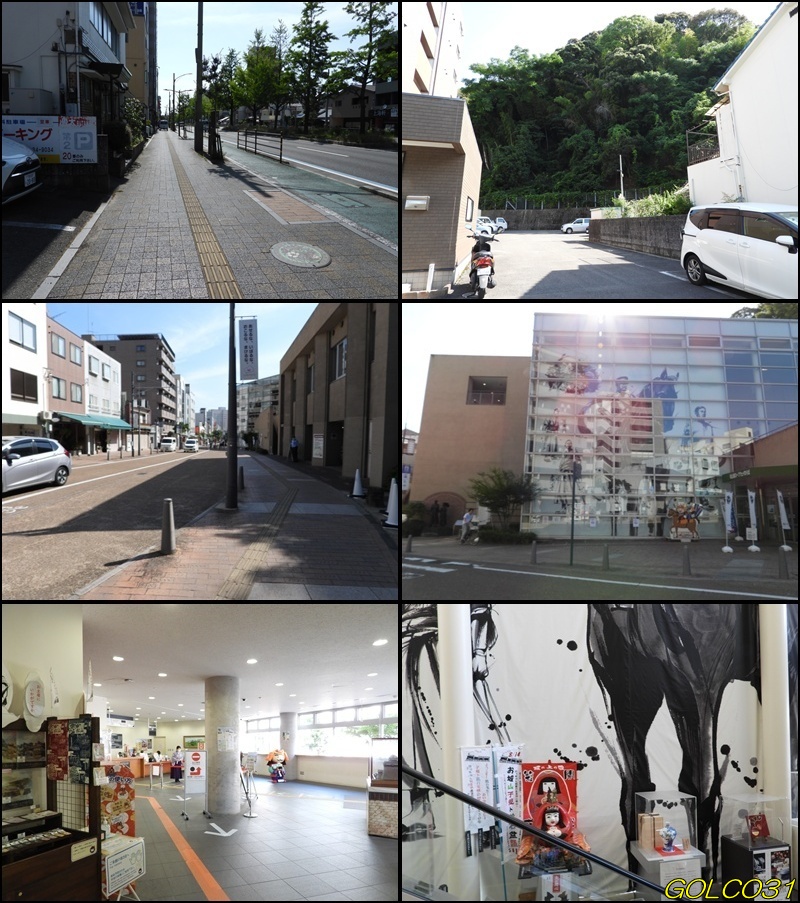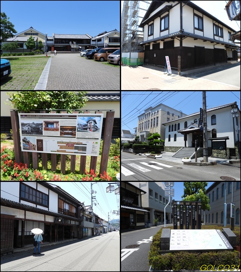 内子座は工事中。中段右の左側の建物が内子町ビジターセンター。下段左:商いと暮らしの博物館。