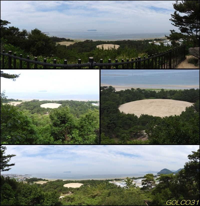 そして高台から有名な 巨大な砂絵「銭形」を眺め近づいていく。