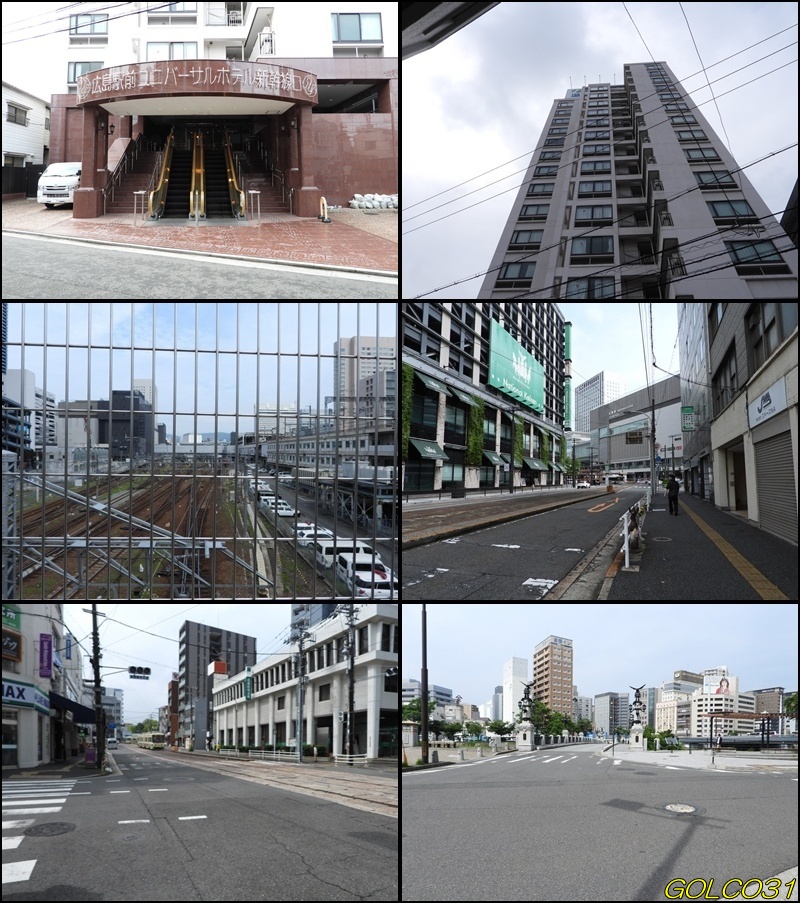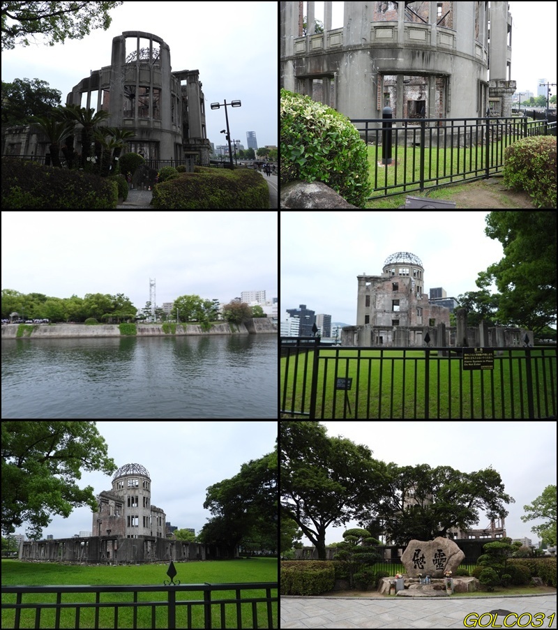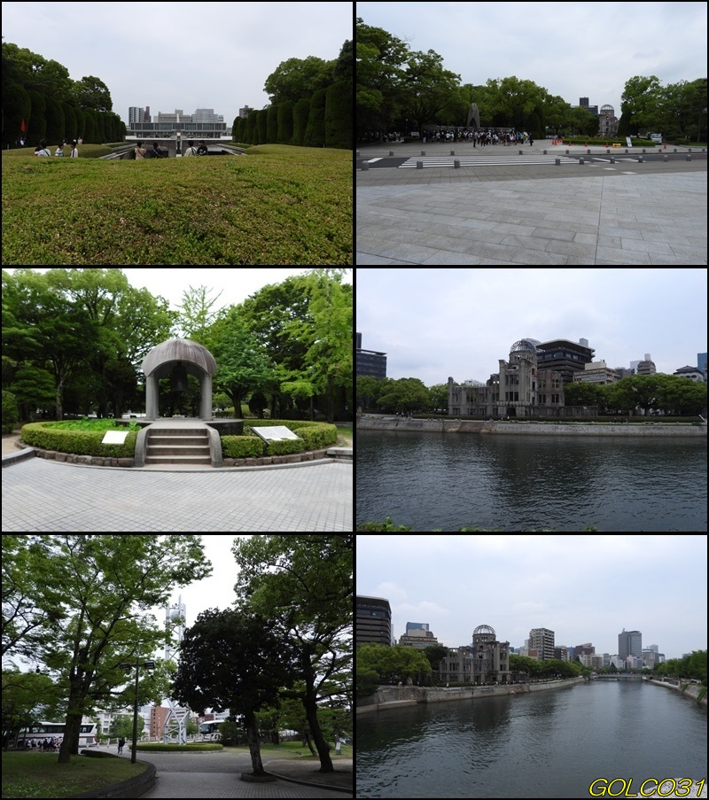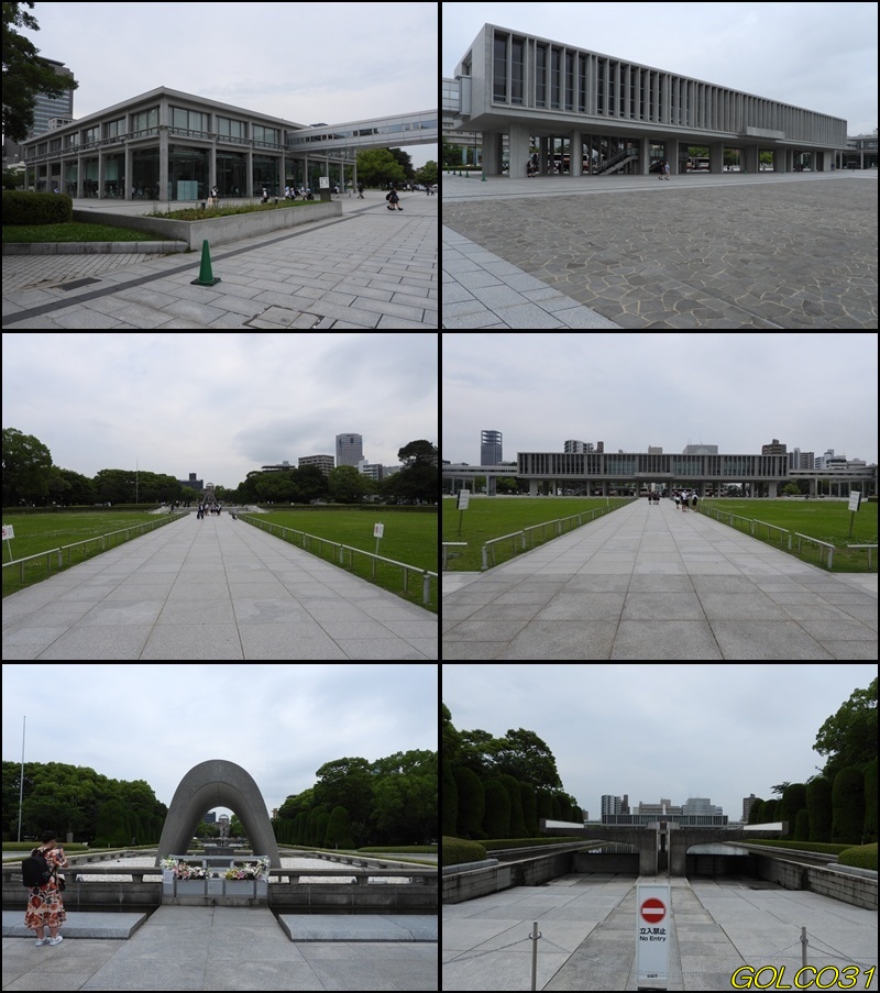上中段、平和記念資料館に広島国際会議場。下段:平和の灯に広島平和都市記念碑