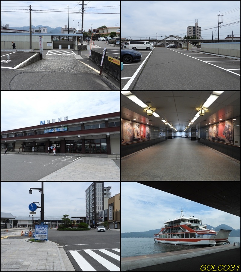 中丸駐車場からJR宮島口駅を越えて宮島フェリーターミナルへ