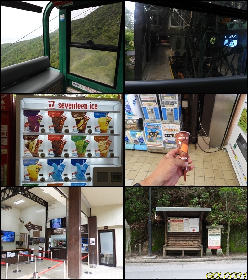 15:45 到着した宮島ロープウェイ駅でどうしてもアイスが食べたくなり、自販機でワッフルコーンショコラ(230円)を購入。