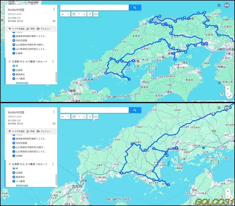 去年の旅行で遠目に見た宮島は「南へ(松戸:千葉→門司:福岡)」を参照。