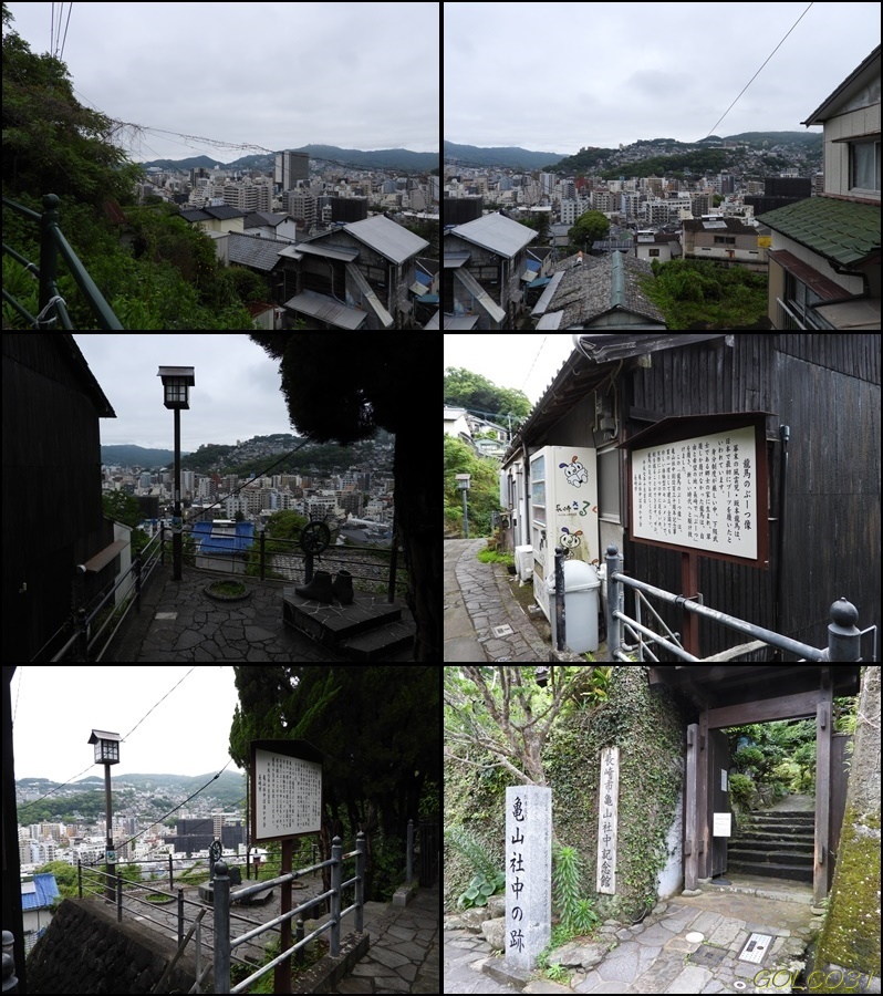 中段と下段左:竜馬のブーツ像、下段:亀山社中跡