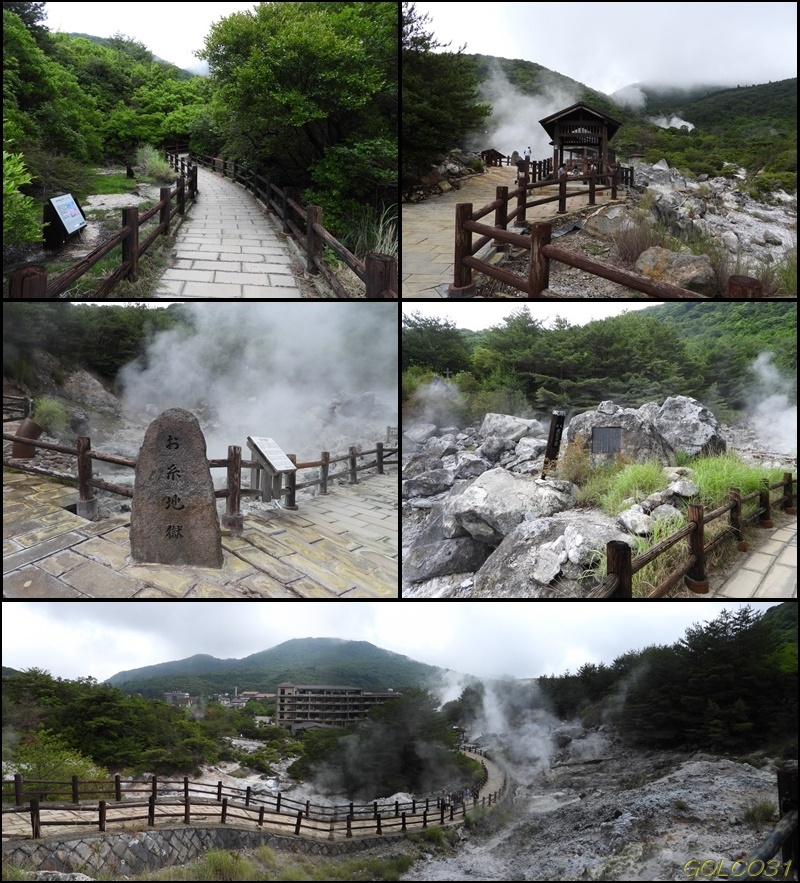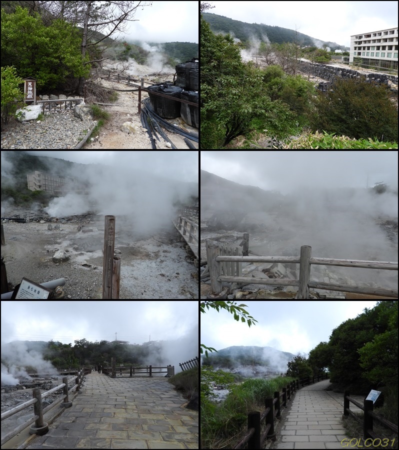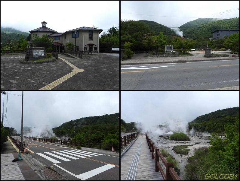 大通りから雲仙地獄へ。上段:天神地獄、中段:清七地獄