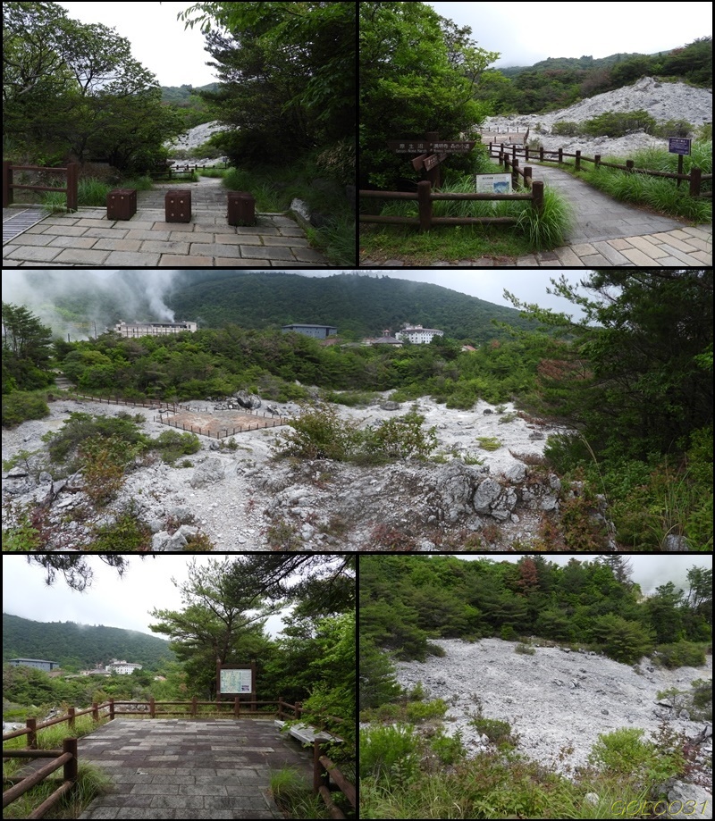 雲仙地獄は雲仙の古湯と新湯の間の白い土(温泉余土)におおわれた一帯で約30の地獄が点在するという。