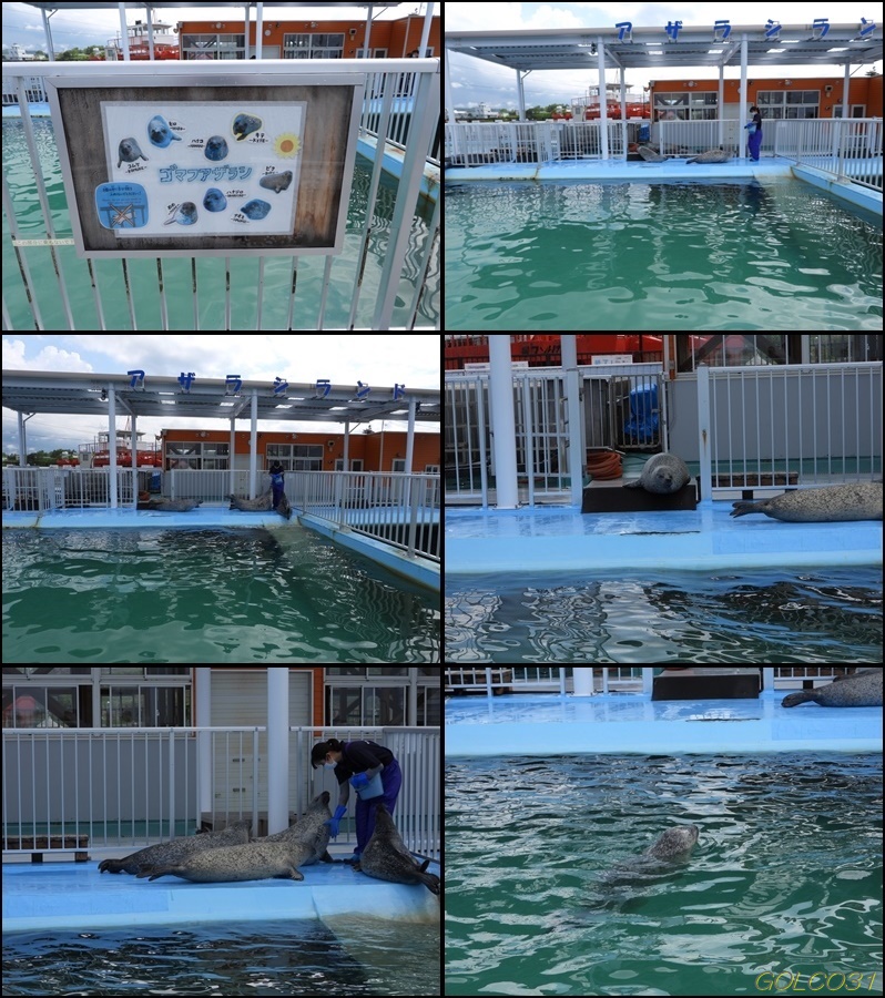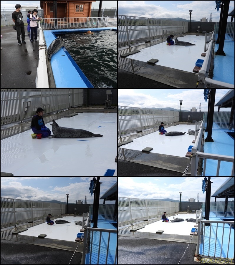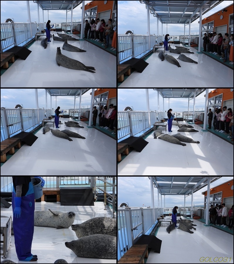 こちらは餌やり体験は無いが大勢のアザラシの餌やりが見れる。