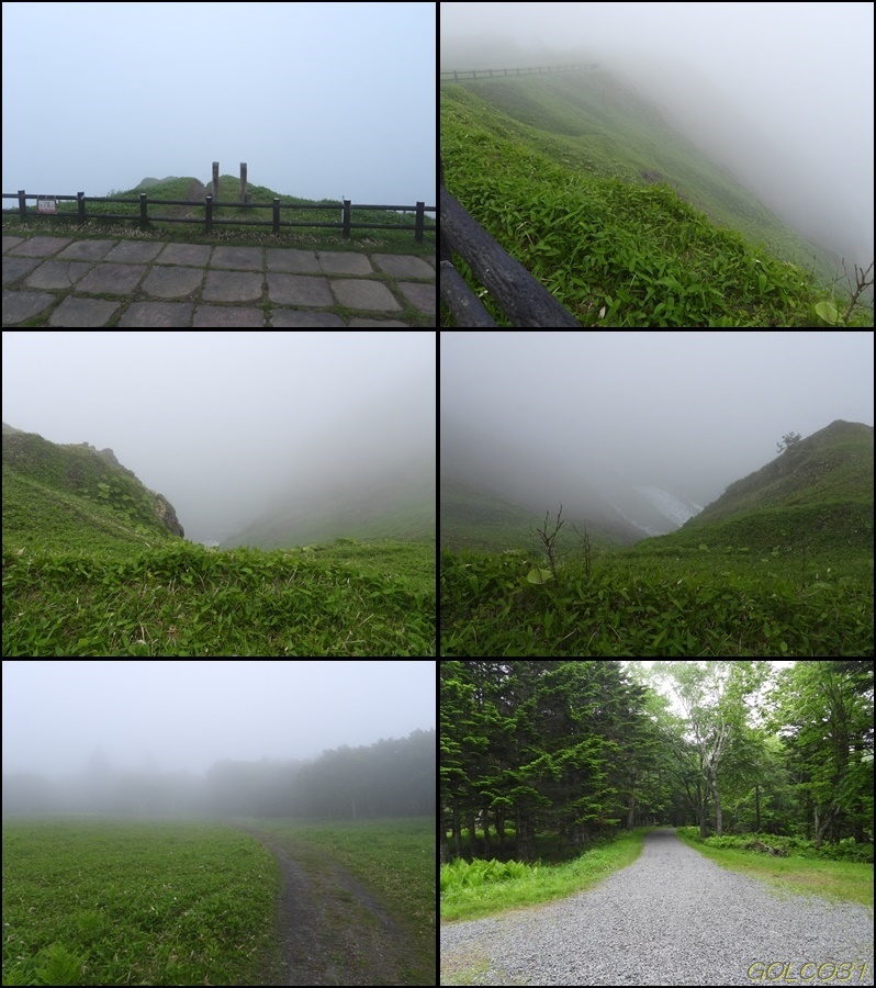ここからは広大な霧多布湿原の中を琵琶瀬川が蛇行する大パノラマと太平洋を一望出来るはずだがこの天気では何も見えず