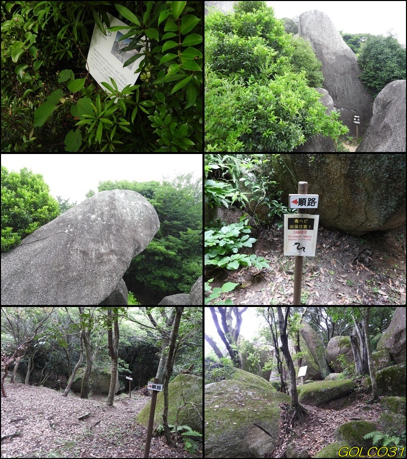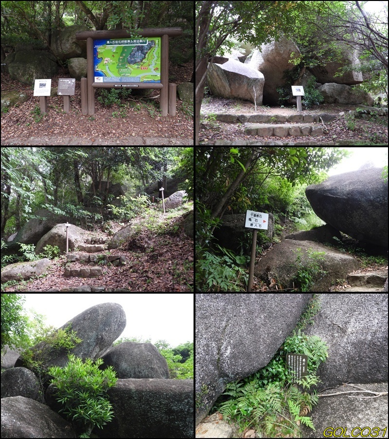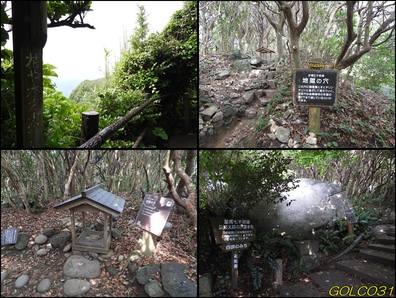 上段右、下段左:地獄の穴、下段右:弘法大師の爪書き石