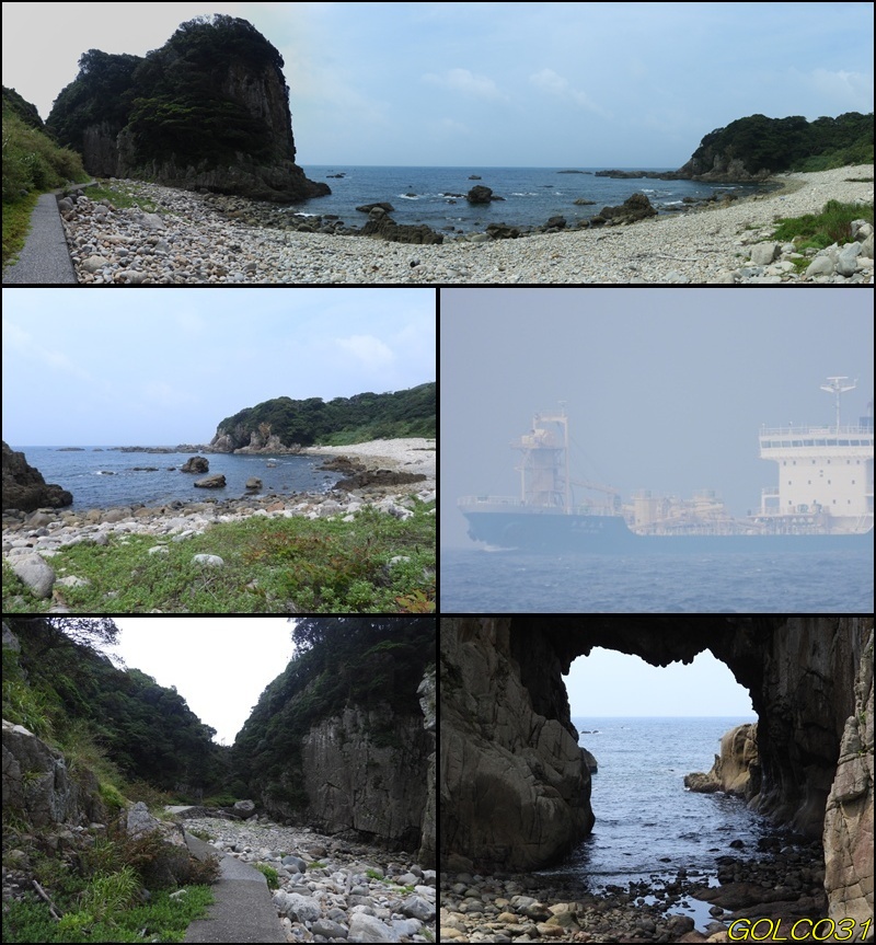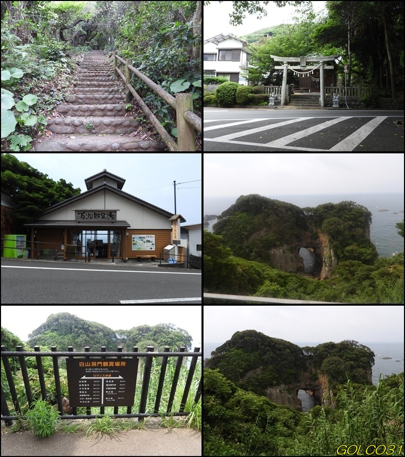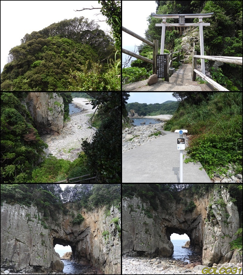 海蝕による洞門で高さ16m、幅17mの大きさがあり、花崗岩洞門では日本一の規模と言われている洞門だ