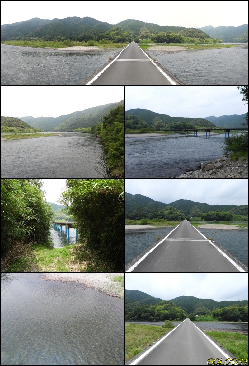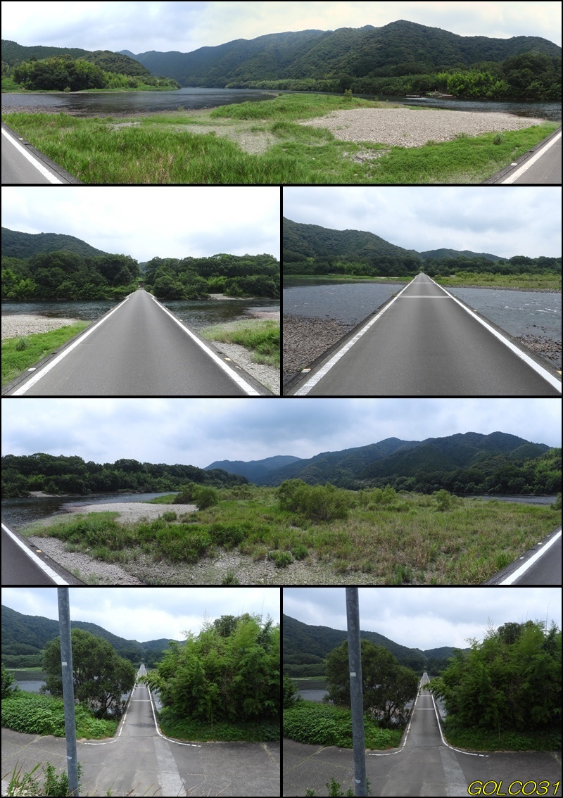 ※沈下橋(ちんかばし、ちんかきょう):増水時に水面下に沈むように設計された、欄干のない低い橋。