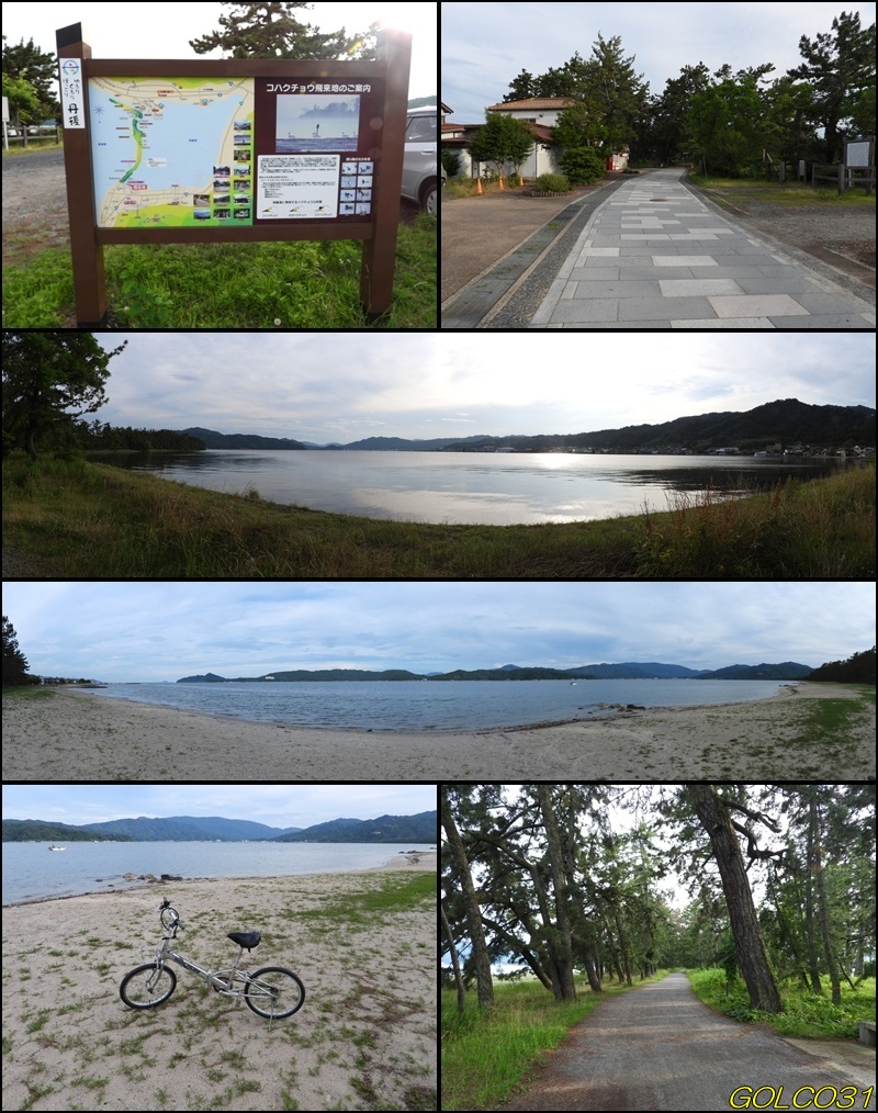 天橋立の南側にある鉄道駅付近の駐車場に車を停め、自転車を出し天橋立を渡り、北側から眺められる傘松公園へと向かう。