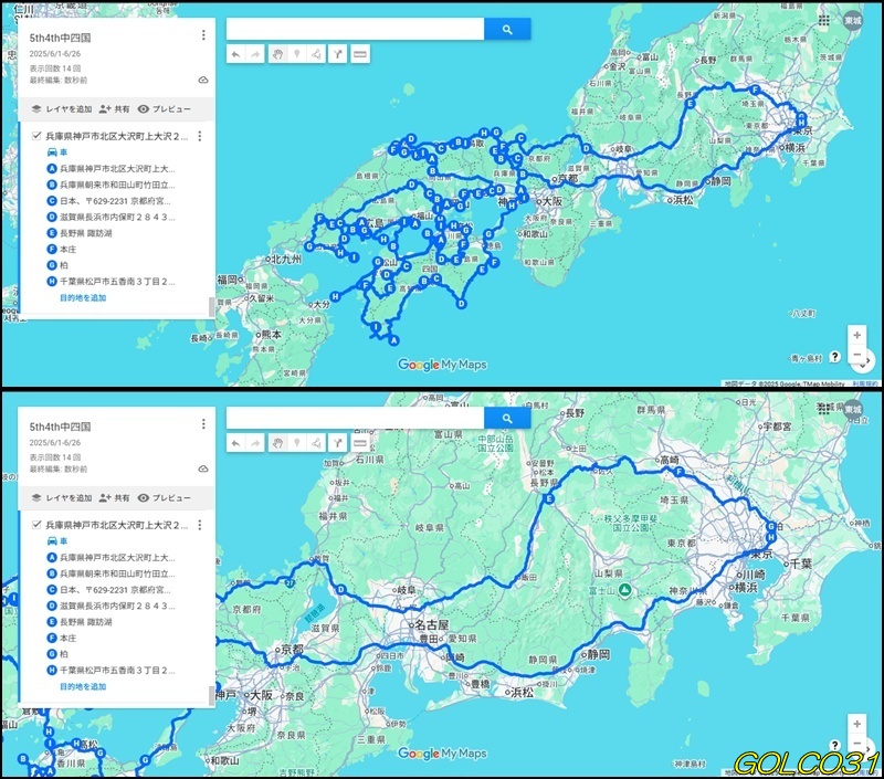 去年山口県の大部分を周っていたので、実際は中四国+兵庫と京都日本海側の旅行となった。